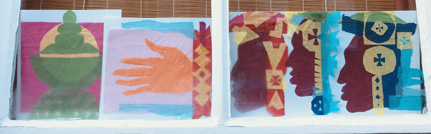 24 December, East Street. The four seasons, paper-cut trees