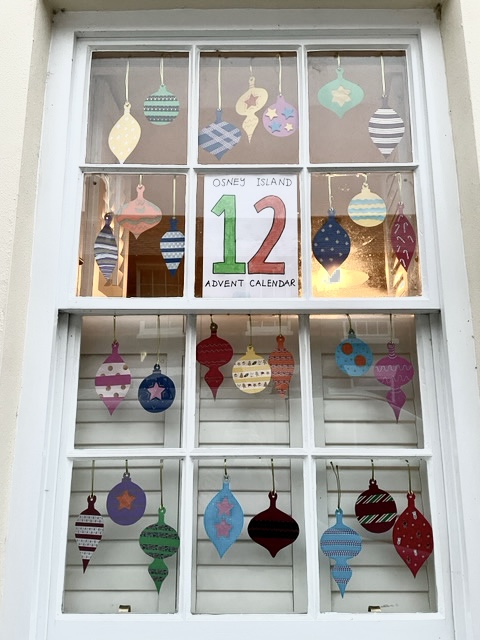 In December 2021 Osney again hosted a living Advent calendar, with a display ‘opening’ in the window of a house (or two) on the island for each day of Advent.