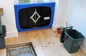 The properties in the lowest part of the island have been issued with flood defences. If your house is one of these and flooding seems imminent you should fix airbrick covers and flood gates at the front and rear of the house. Pumps can then be used to keep the water below floor level — ideally by putting the pump into the water under the floor and using the hose to pump water out of the door or window.