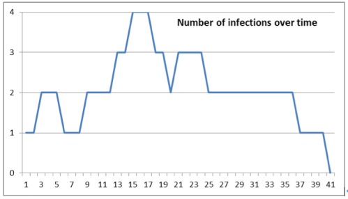 This exercise demonstrates a simple modelling principle similar to those used as the basis for modelling the COVID-19 pandemic.